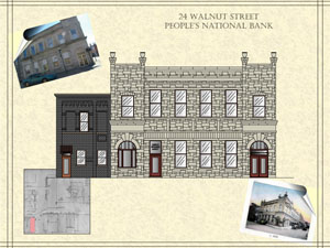 The firm of Michael Gioulis was hired to prepare facade renderings for six buildings located within the courthouse square as well as a streetscape capturing the historic ambiance of the square.