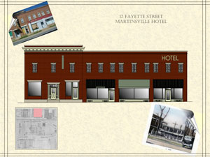A public exhibit of the renderings along with some historic mementoes was held on September 7, 2007 at the Piedmont Arts Center in Martinsville, Virginia. It is hoped that these renderings will inspire property owners and others to rehabilitate their buildings within a historic preservation context.